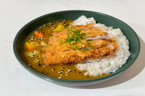 Nikmati kelezatan Makanan Kari Katsu yang gurih dan renyah, perpaduan sempurna antara kari khas Jepang dan potongan daging katsu yang lembut, cocok untuk pecinta kuliner.