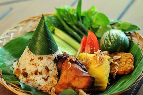 Nikmati kelezatan nasi timbel khas Sunda yang lengkap dengan lauk-pauk tradisional, sambal, dan lalapan segar, menyajikan cita rasa autentik dan menggugah selera.