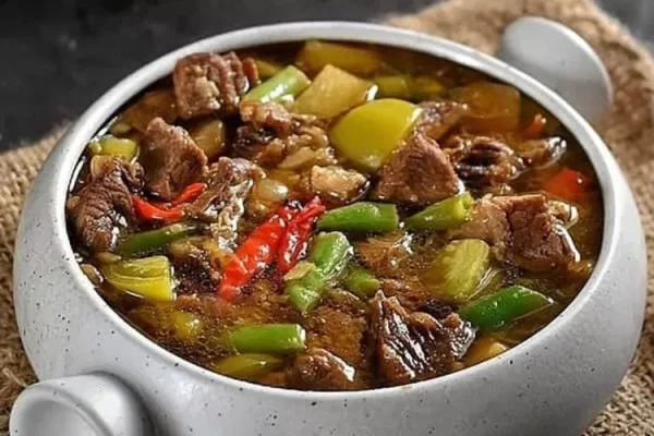 Nikmati kelezatan Makanan Asam-asam Daging yang kaya rasa, perpaduan asam dan gurih yang menggugah selera, cocok untuk pecinta masakan Indonesia yang autentik.
