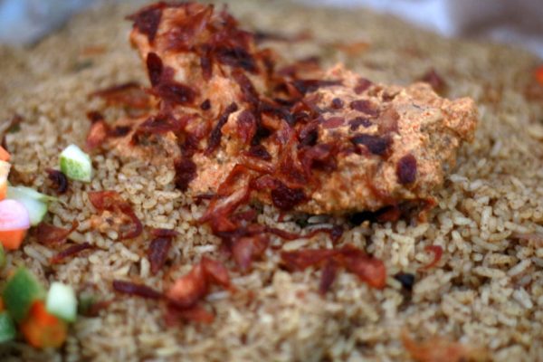 Nikmati kelezatan nasi kebuli kambing yang gurih dan aromatik, perpaduan rempah khas Timur Tengah yang menggoda selera dan cocok untuk berbagai acara istimewa.