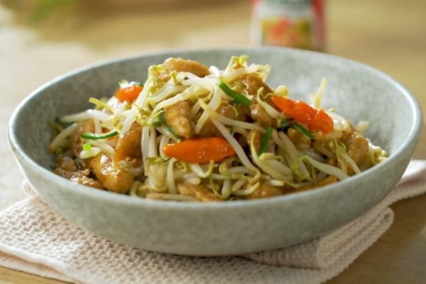 Nikmati lezatnya makanan bean sprouts chicken, hidangan sehat dan gurih yang menggabungkan kerenyahan tauge dan ayam lembut, cocok untuk menu makan siang atau dinner.
