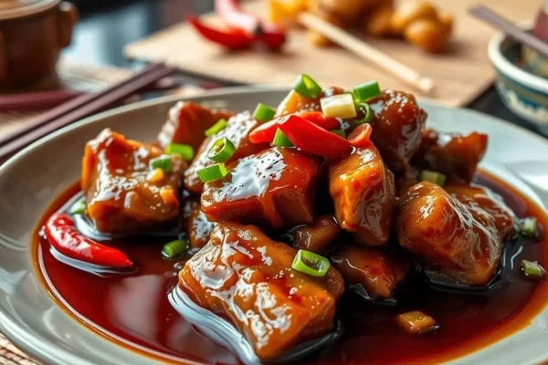 Makanan Babi Kecap, hidangan khas Indonesia, menawarkan cita rasa gurih dan manis dari daging babi yang dimasak dengan kecap, cocok untuk pecinta masakan beraroma kaya.