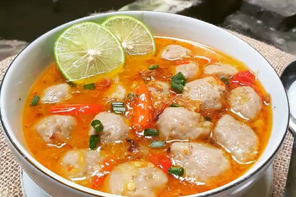Nikmati sensasi pedas dan gurih dari bakso mercon, makanan khas Indonesia yang terkenal dengan rasa pedas menyengat dan tekstur daging yang kenyal.